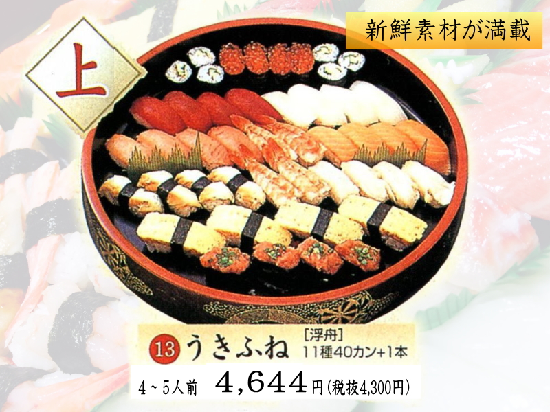 しゃり、ねたに自信あり。ご好評いただいております。当店の特製「にぎり寿司」、宴会やパーティーなどにどうぞ! 大特上寿司 特上寿司 特選寿司 上寿司 単品 ご注文は にぎり寿司 専用電話 042-774-8848 受付時間 午前10時~午後8時30分 年末・年始休まず営業致します。